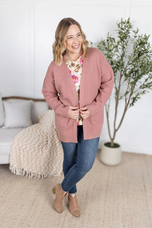 The Billie Open Knit Cardigan - Dusty Rose