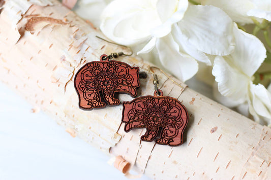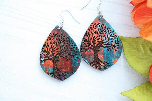 Rustic Engraved Giving Tree Pendant or Earrings: Stud dangles